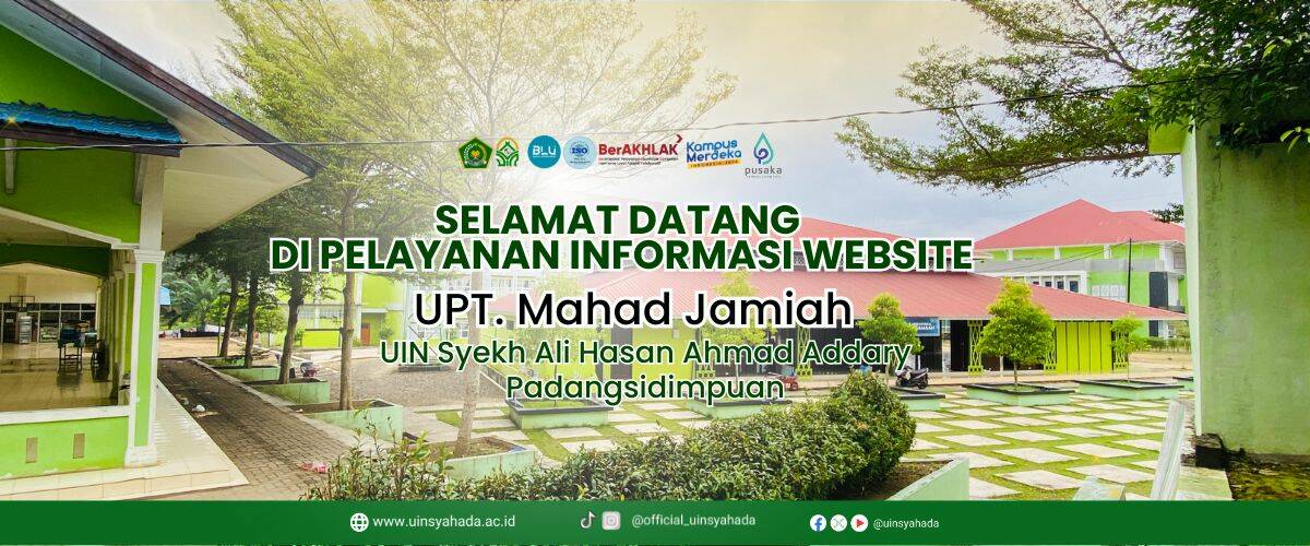 Ma’had Al-Jami’ah adalah program asrama atau “pesantren kampus” di UIN Syahada Padangsidimpuan yang mengintegrasikan pembinaan keagamaan, penguatan bahasa (Arab dan Inggris), pembiasaan ibadah, dan penguatan karakter bagi mahasiswa semester I dan II.
